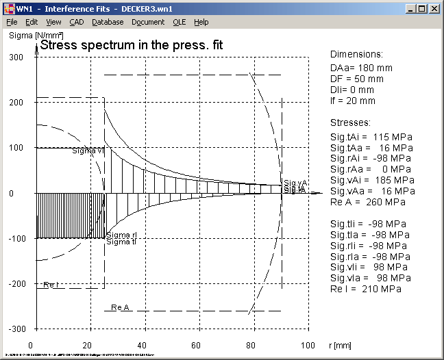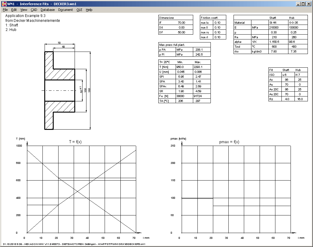 As a result of pressing or shrinking process, hub will be enlarged and shaft will be compressed. Deformation factors and extension is listed in the printout. New release of WN1 also lists the extended outside diameter of the hub, and for hollow shafts the reduced inner diameter after the pressure process as well. A table of the deformation data also has been added to Quick view (for non-stepped hubs only).