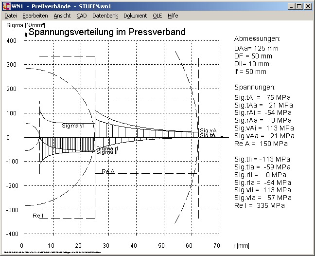 Bislang gab es ein Spannungsdiagramm nur für durchgehende Naben. Jetzt kann man auch für gestufte Naben für jeden Abschnitt ein Spannungsdiagramm ausgeben.