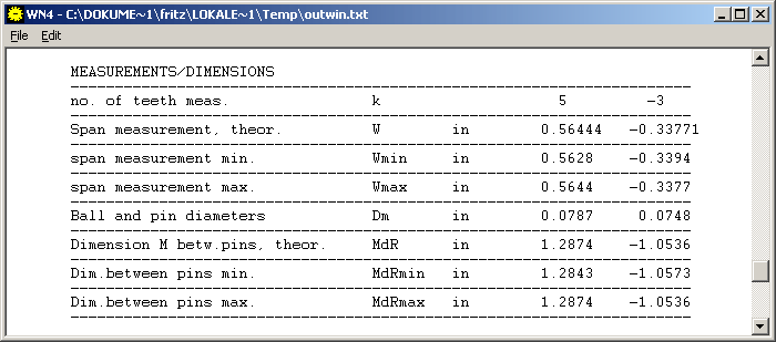 Span measurement W over k teeth has been added to the printout.