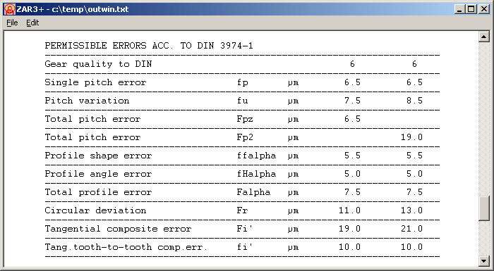 ZAR3+ since Version 7.2 calculates and prints permissible deviations according to DIN 3974-1.