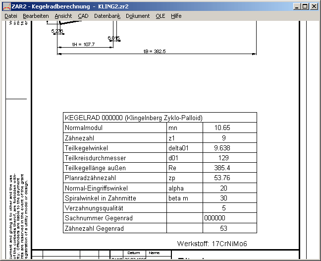 In den Fertigungszeichnungen der Stirn-, Kegel- und Schneckenräder wird der Werkstoff mit ausgedruckt.
