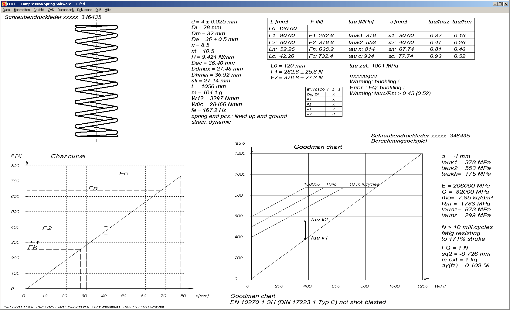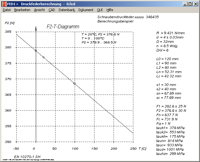 In den Temperaturdiagrammen werden jetzt die Zahlenwerte von Schubmodul und Federkraft F1,F2 für die berechneter Temperatur sowie min- und max-Wert des angegebenen Temperaturbereichs mit ausgegeben.