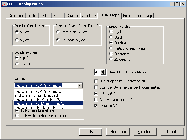 Wenn Sie die alte Einheit N/mm˛ statt MegaPascal für Spannungen bevorzugen, können Sie dies jetzt konfigurieren unter "Datei->Einstellungen"
