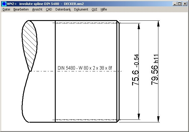 When manufacturing toothing, min and max value of tooth root diameter results from tooth height and addendum modification coefficients xemin and xemax. DIN 5480 defines a larger tolerance for df, based on nominal diameter: Adf=0.2m+0.73Asi. In production drawing of WN2, tolerance according to DIN 5480 is now applied on df, as in the table.