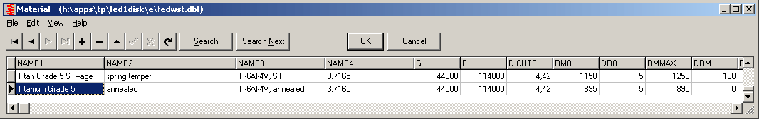 Titan Grade 5 (Ti-6Al-4V) in condition "annealed" and "spring temper" has been added to the material database.