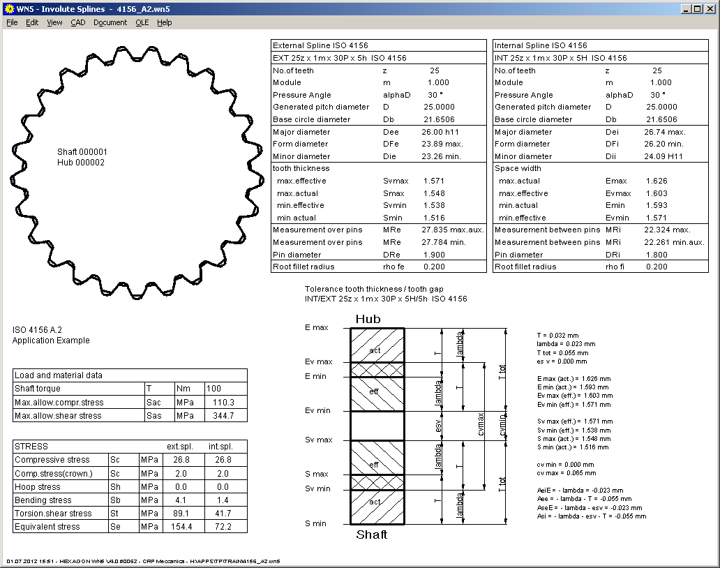New Quick3 view contains drawing of internal and external spline, tables with dimensions and strength data, and tolerance chart.