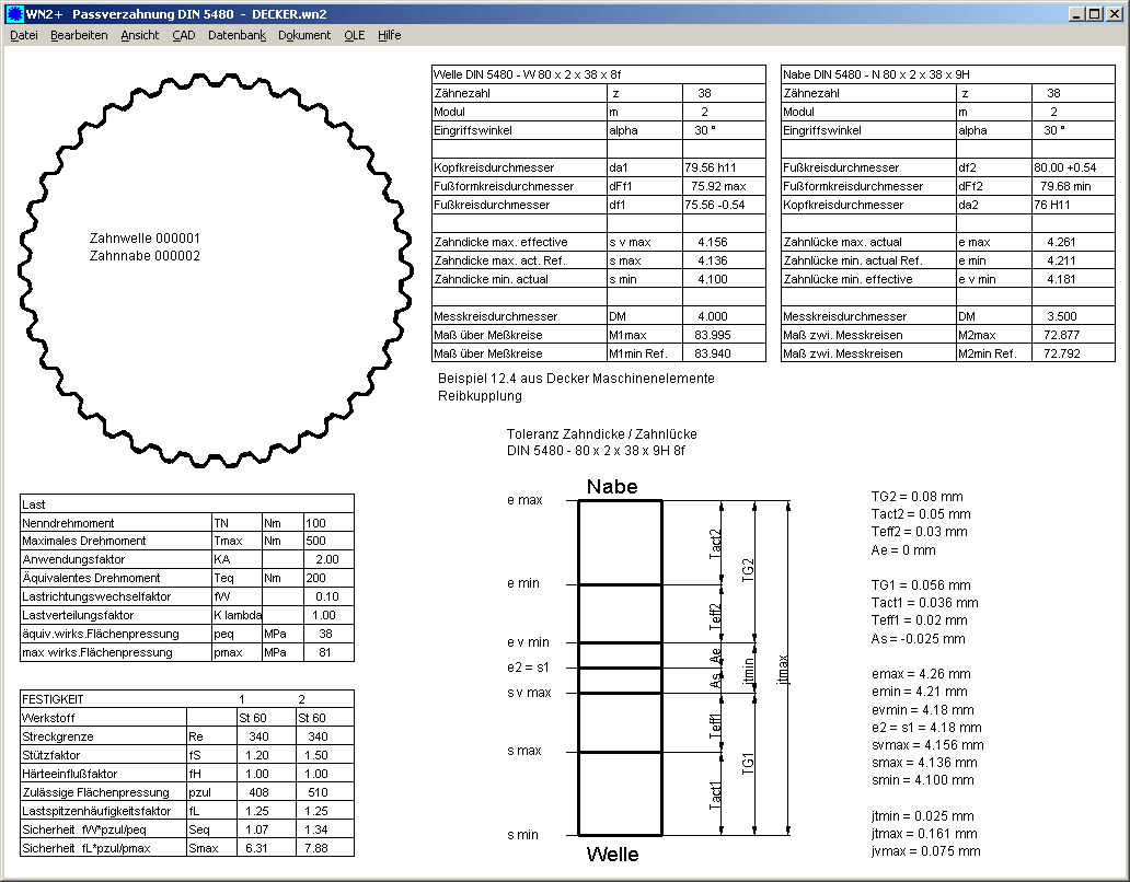 Die neuen Quick3-Ansicht enthält eine Zeichnung der Zahnwellenverbindung, Tabellen mit Abmessungen und Festigkeitsberechnung, sowie das Schaubild mit den Zahnflankentoleranzen von Welle und Nabe..