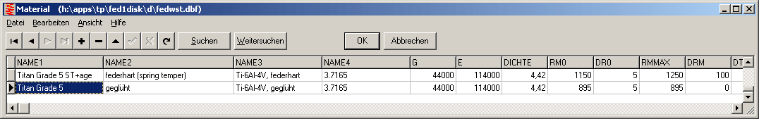 In die Werkstoffdatenbank wurde Titan Grade 5 (Ti-6Al-4V) aufgenommen im Behandlungszustand "geglüht" und "federhart"