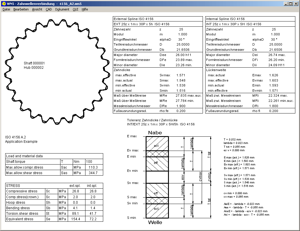 WN5 erhielt eine Quick3-Ansicht mit Zeichnung der Zahnwellenverbindung, Toleranzschaubild und Tabellen mit Abmessungen und Festigkeitsdaten.