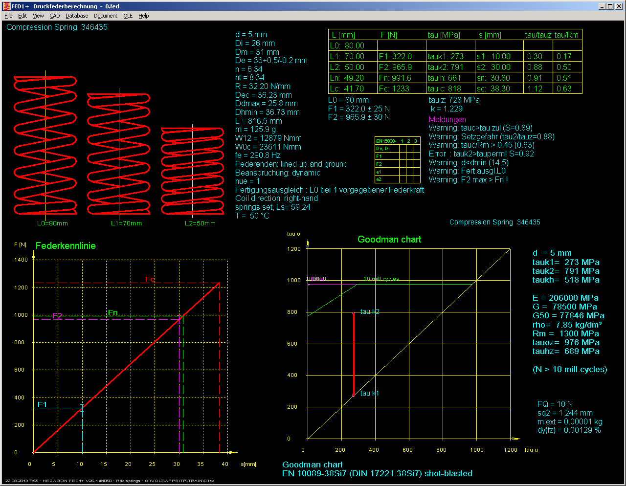 FED1+: Auslegung Werkstoff: Federn aus verschiedenen Werkstoffe vergleichen
