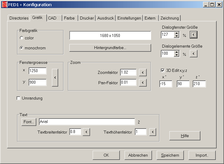 Wenn Sie in der Windows-Systemsteuerung die Schrift vergrößert haben ("Die Lesbarkeit auf dem Bildschirm erleichtern") auf 125%, dann müssen Sie unter "Datei->Einstellungen->Grafik" "Dialogfenster Größe" auch auf mindestens 125% erhöhen, oder Dialogelemente Größe" auf 80% verkleinern. Zum Testen Konfigurationsfenster schließen und noch mal öffnen. Wenn das Fenster mit Scrollbalken angezeigt wird, "Dialogfenster Größe" vergrößern. Konfiguration speichern. Wenn danach einzelne Eingabefenster (z.B. Werkstoffeingabe in FED1+) immer noch mit Scrollbalken angezeigt werden, müssen Sie das Programm beenden und neu starten.