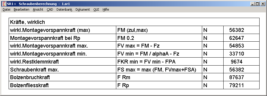 Die maximale Schraubenkraft beim Anziehen ist FSmax = FMmax. Im Betrieb kommt dann noch die Schraubenzusatzkraft FSA hinzu, dafür vermindert sich die Klemmkraft um den Setzbetrag: FSmax = FMmax – Fz + FSA = FVmax + FSA. Bisher wurde FS max konservativ gerechnet als Gesamtschraubenkraft FS max = FM max + FSA. Jetzt wird der größere Wert der maximalen Schraubenkraft beim Anziehen und im Betrieb verwendet: