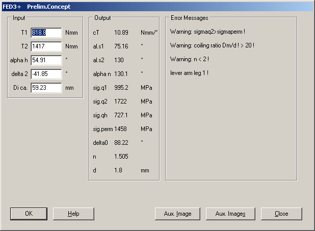 Unter Bearbeiten->Berechnungsmethode" kann man konfigurieren, ob die festgelegte Toleranz für den Windungsdurchmesser Di, De oder Dm gilt. Der gewählte Wert ist dann auch Eingabewert bei Auslegung, Nachrechnung und Vorauslegung. Bei der Vorauslegung war bislang immer mit der Standardeinstellung Di gerechnet worden, dies wurde jetzt korrigiert.