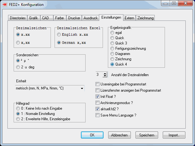 Unter "Datei->Einstellungen->Einstellungen->Ergebnisgrafik" kann man konfigurieren, welche Bildschirmgrafik nach Öffnen einer Datei angezeigt werden soll. Hier kann man jetzt auch "Quick 4" einstellen. Diese Übersicht auf einem A3-Zeichnungskopf gibt es zwar bislang nur bei FED1+, FED2+, FED5 und FED7, wird aber auch bei den meisten anderen Programmen kommen.