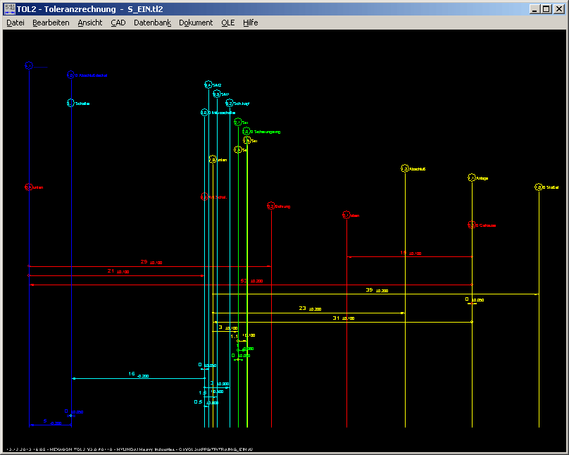 In TOL2 werden Einzelteile (Elementgruppen) aus TOL1 zu einer Baugruppe zusammengesetzt. Bislang wurden dabei die einzelnen Maßelemente neu durchnumeriert. Das machte es schwierig, die Maßelemente später wiederzuerkennen und den Einzelteilen zuzuordnen. Deshalb werden jetzt die Maßelementnummern der Einzelteile beibehalten und die Nummer des Einzelteils vorangestellt, getrennt durch einen Punkt, z.B. "1.3" = drittes Maßelement von Teil 1.