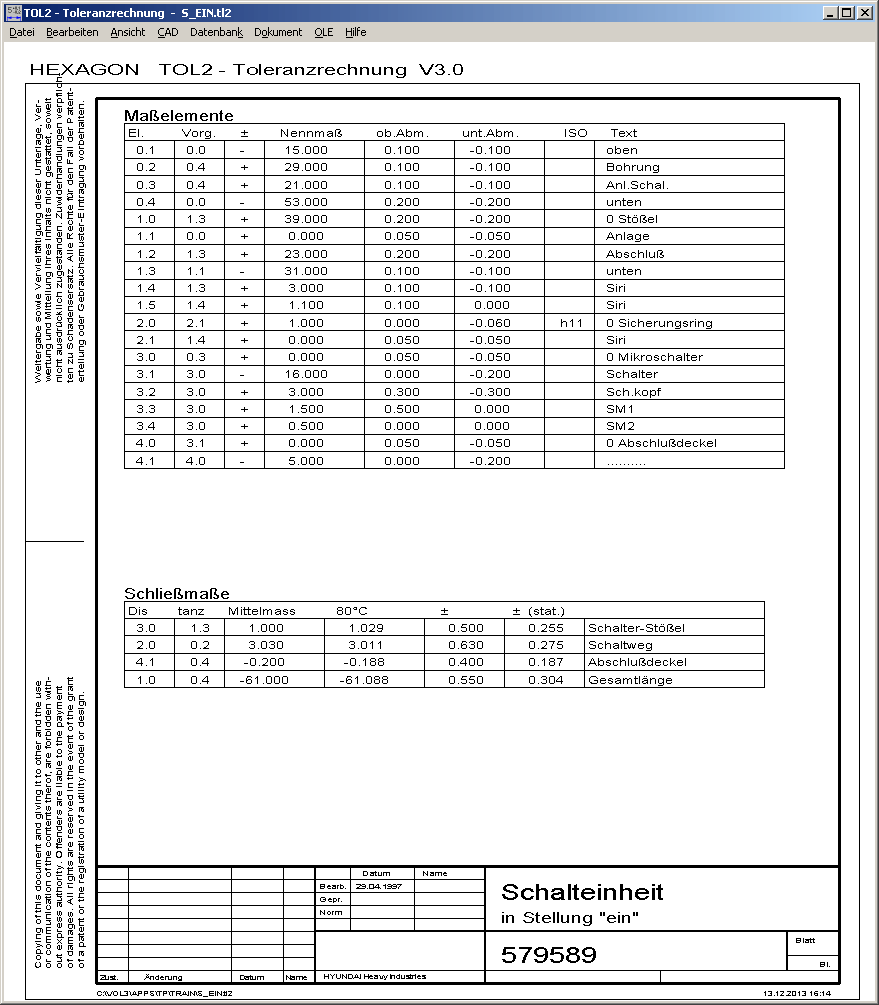 Ähnlich wie in TOL1 gibt es nun auch in TOL2 eine Fertigungszeichnung mit Elementetabelle und Schließmaßen.