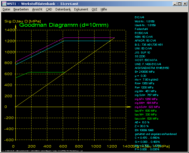 Außer Smith- und Haigh-Diagrammen zur Dauerfestigkeit werden jetzt auch Goodman-Diagramme gezeichnet. Goodman-Diagramme sind geeignet bei schwellender dynamischer Beanspruchung wie etwa bei Schraubenfedern.