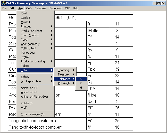 Tables of Toothing, Measure, Tolerances and Roll angle for sun, planet and hollow gear have been added at View->Table.