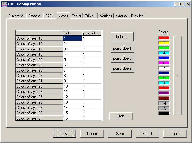We have improved configuration of colors in all programs. Colors 1 until 16 are no longer fixed to certain colors, now click into the color field to configure the color that you want.