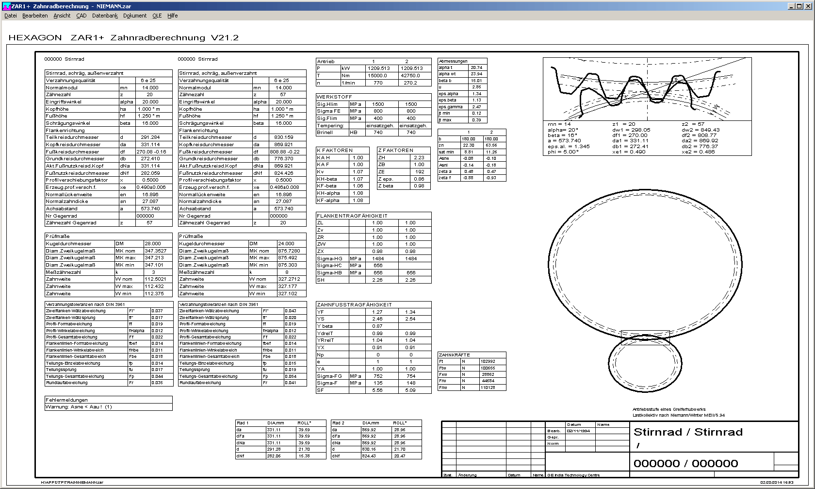 Eine "Fertigungszeichnung Quick3" wie in anderen Programmen gibt es in ZAR5 nicht, die Daten würden nicht auf ein DIN A4 Blatt passen. Dafür gibt es neu eine Fertigungszeichnung "Quick4" mit allen Quick3-Daten in einem DIN A3 Zeichnungskopf, noch ergänzt durch Tabellen mit Abmessungen und Prüfmaßen von Sonnenrad, Planetenrad und Hohlrad.