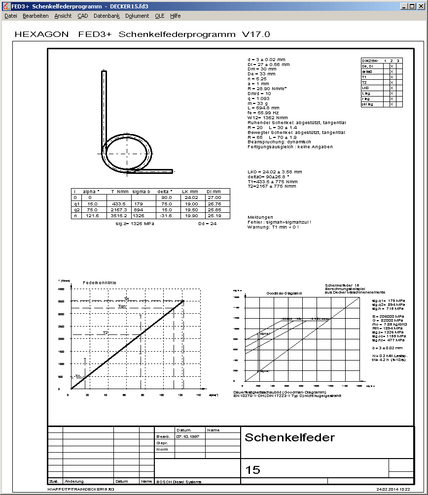 Die neue Quick4-Ansicht enthält alle Quick3-Daten sowie polare Federkennlinie und Federzeichnungen in Position 0,1,2 in einem A3-Zeichnungsrahmen.