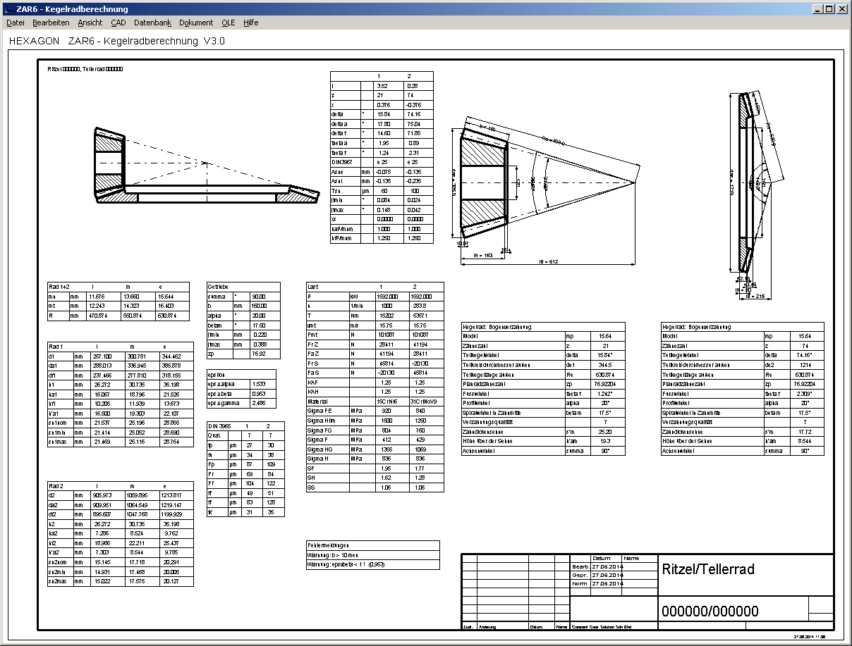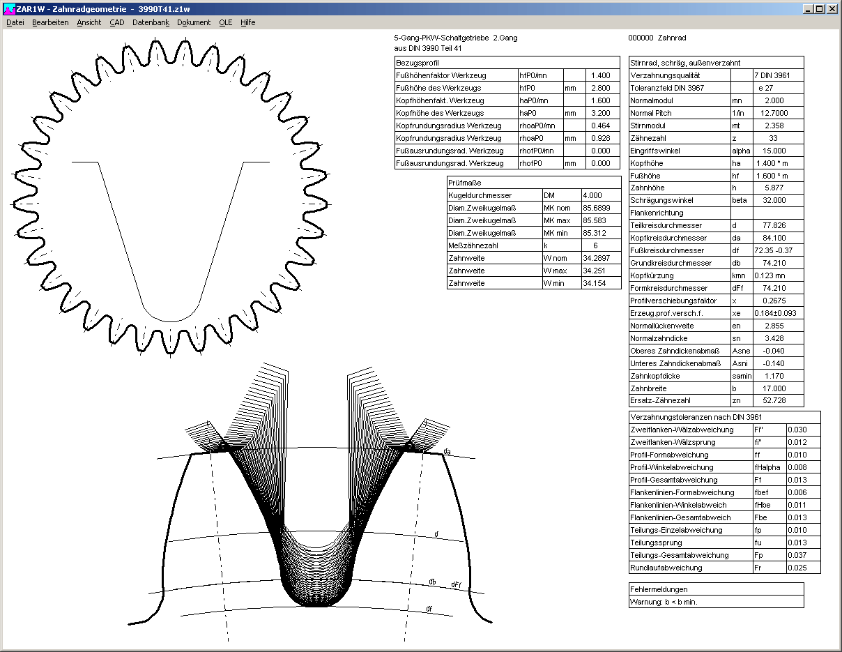Gleich wie in ZAR1 und anders als in ZARXP berechnet ZAR1W alle Abmaße und Toleranzen aus dem gewählten Toleranzfeld.
