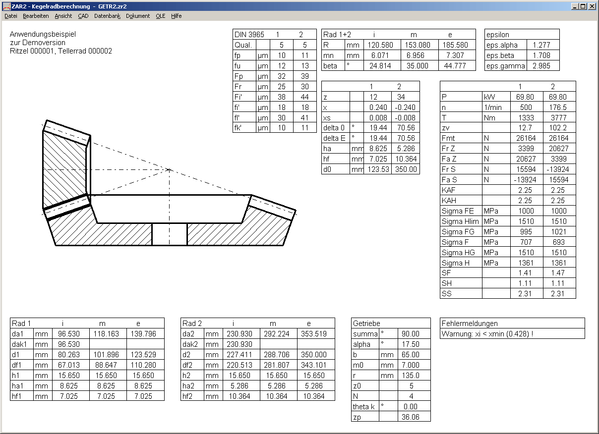 Die Abmessungen eines Zahnrads kann man auch mit ZAR1 statt ZAR1W berechnen. In ZAR1 muss man aber immer ein Zahnradpaar eingeben. Die Eingabe eines Gegenrads entfällt in ZAR1W, dafür kann man keine Festigkeit berechnen.