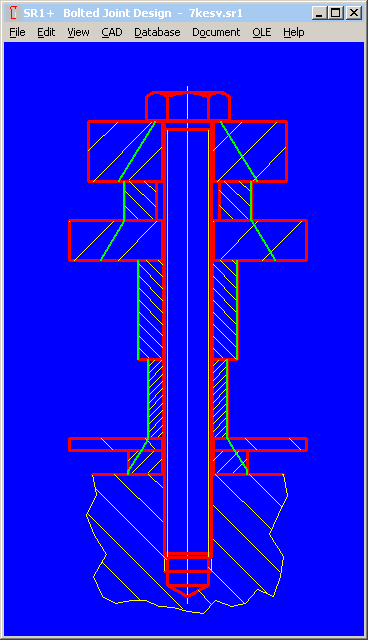 In the latest version of SR1 you can configure to calculate the elastic resilience by means of deformation cylinders to VDI2230:1986, or by means of deformation cones according to VDI 2230-1:2014. Unfortunately, calculation to VDI 2230-1:2014 assumes that clamping plates of every bolted joint can be treated as one deformation cone. But therefore, outside diameters should be similar, or should increase to a maximum in the middle between bolt head and nut. If this not applies, or E modules of clamping plate materials are not equal, elastic resilience of each clamping plate must be calculated separately. Bearing diameter dw for the upper surface of the next clamping plate is then bearing diameter for the lower side of the previous clamping plate. Formula (52) in VDI 2230-1:2014 is valid only if outside diameter of every clamping plate lies inside of the calculated deformation cone.