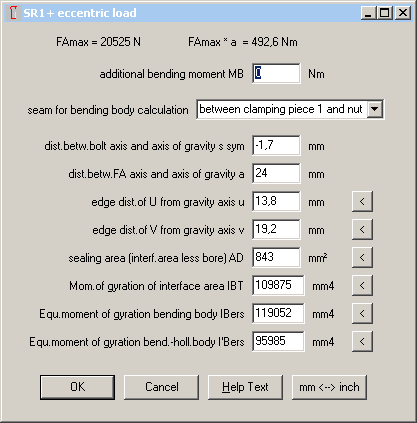 At "Eccentric Application", an additional bending moment can be entered. As defined in VDI2230-1:2014, additional to bending moment FA * a. MB is always static, and can be with positive or negative value.