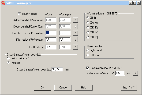 And if you set "da,df = const", you can only input x1. Profile shift x2 is set -x1, so that tip diameter and root diameter remain unchanged, and tooth height factors are calculated accordingly.