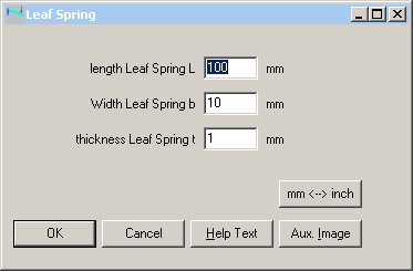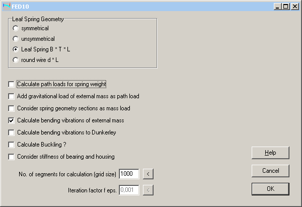 If the leaf spring geometry is just a piece of flat steel (as in FED15), you can now configure a simplified input for width, thickness and length of the leaf spring (at "Edit->Calculation method").