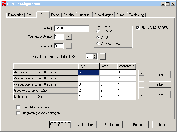 Konfiguration 3D -> 2D DXF-IGES