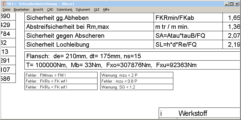 Besonders wenig Platz war in der Quick-Ansicht von SR1, wenn dazu noch Flanschdaten und Sicherheiten gegen Scherung und Lochleibung ausgegeben wurde. Dort werden Fehlermeldungen jetzt 2-spaltig gedruckt.