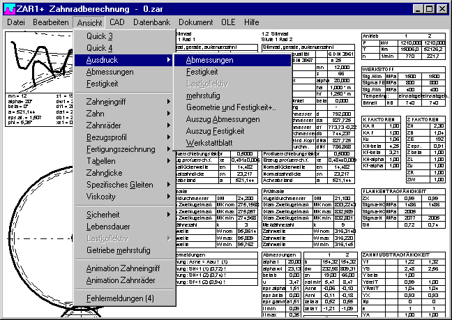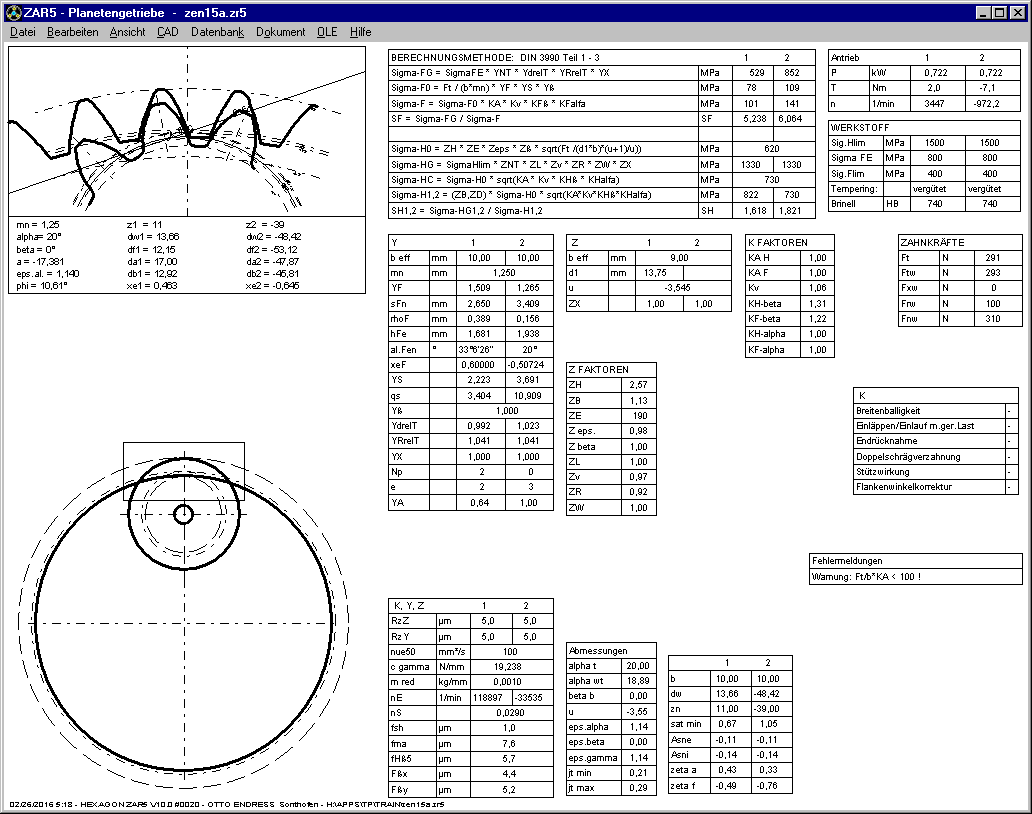 Die aus ZAR1+ bekannten Ansichten von Abmessungen mit nom/min/max-Tabellenwerten und die Daten aus der Festigkeitsberechnung mit Zwischenwerten, Faktoren und Formeln gibt es jetzt auch in ZAR5 für die Paarung Sonnenrad-Planetenrad und Planetenrad-Hohlrad.