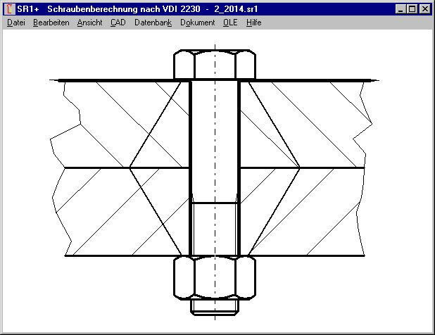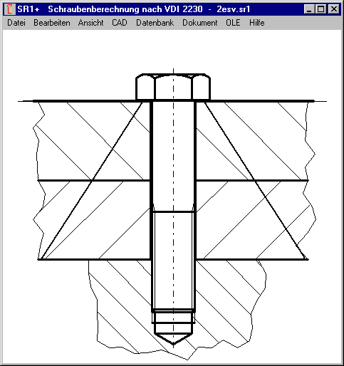 In SR1+ kann man jetzt die Option "ESV -> DSV (phiD, dwNut)" setzen, dann wird der Druckkörper einer ESV gleich berechnet wie für eine DSV. Dafür wird der Lagerdurchmesser dw des Muttergewindes ermittelt gemäß Bild 9 in VDI 2230, dann ist dw= d + 2*tan(phi)*mgeo mit phi=Kegelwinkel DSV und mgeo = Einschraubtiefe, evtl. abzüglich einer Gewindesteigung P.