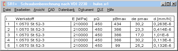 pGKR: Grenzflächenpressung Kriechen aus der Datenbank