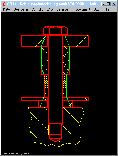 In der Beispielverschraubung tritt die höchste Flächenpressung im ersten Klemmstück auf (434 Mpa). Gefährdet ist aber das dritte Klemmstück (Hülse), da pBmax = 386 Mpa größer als Re = 340 Mpa.