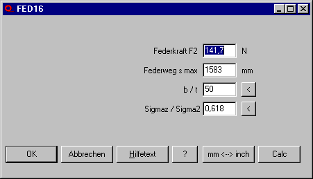 In FED16 gibt es eine Vorauslegung mit Eingabe von Federkraft und Auszuglänge, und das Programm berechnet die Abmessungen.