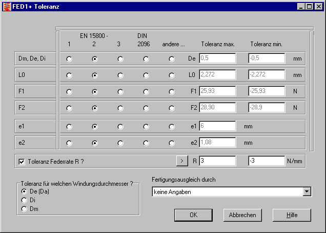 In FED1+ kann man jetzt auch Toleranzen für die Federrate eingeben.