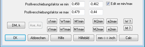 Unter "Bearbeiten->Abmessungen Zahn" kann man (nur in WN2+) Sonderverzahnungen eingeben, wobei man von der Innenverzahnung auch die Zahnlückenweite e2min und e2max eingeben kann. Leider waren die Knöpfe e2min und e2max vertauscht, das wurde korrigiert. e2max gehört zu M2min und e2min gehört zu M2max.
