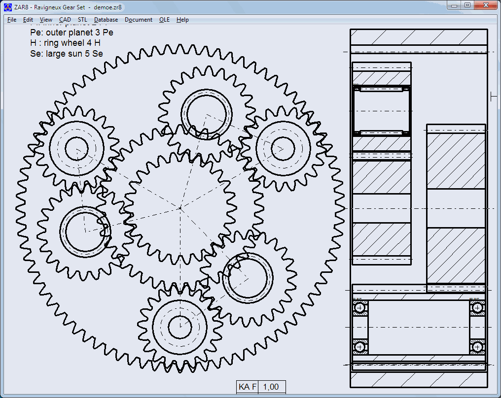 ZAR8 calculates all gear pairs and meshes in one sequence.