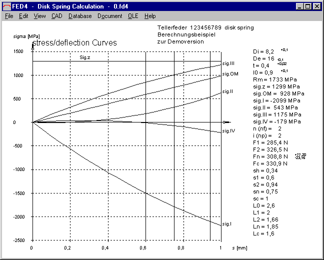Die Spannung SigmaOM in der Mitte der Tellerfeder wird vor allem für die Auslegung von statisch beanspruchten Tellerfedern verwedet, bei dynamisch beanspruchten Federn sind die
