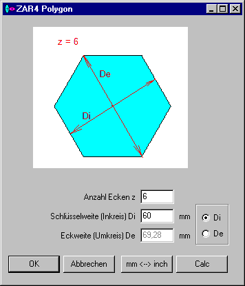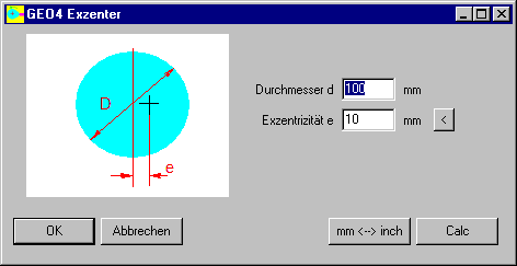 Für die Eingabe der Nockenform in GEO4 und der Zahnradform in ZAR4 gibt es für die Sonderformen Sinus-Linear, Polygon und Exzenter neue Eingabefenster mit Bild.