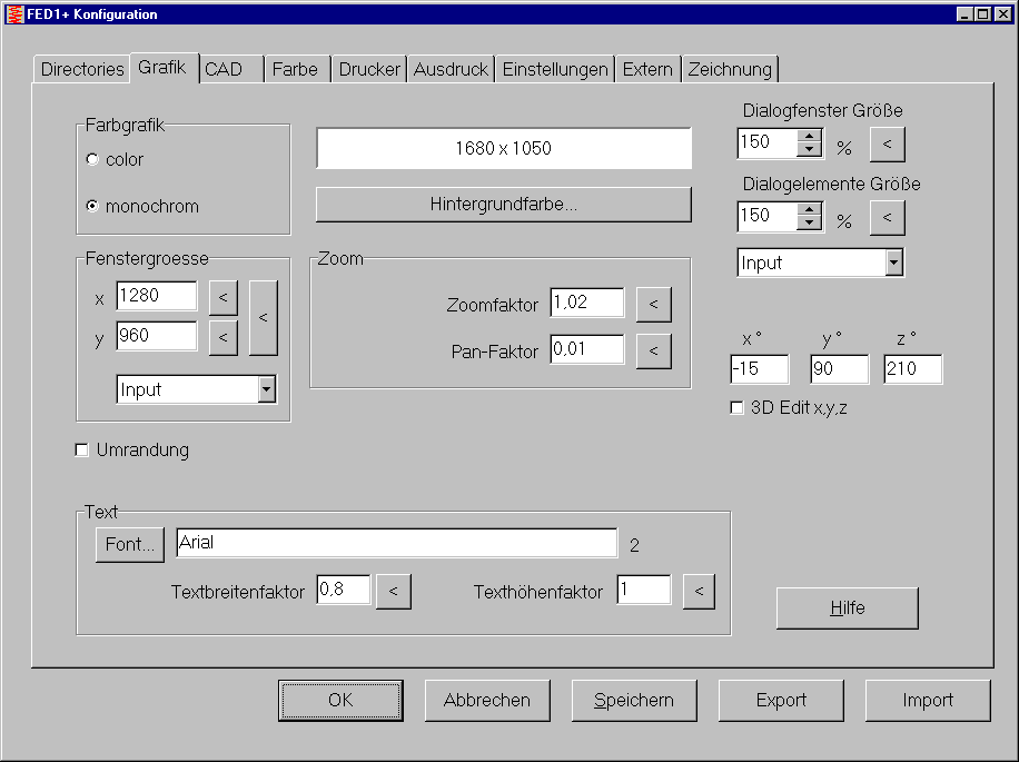 Wenn Text und Eingabeelemente bei der Eingabe zu klein sind (bei einem Notebook mit hoher Auflösung aber kleinem Display), kann man im HEXAGON-Programm unter Datei\Einstellungen\Grafik "Dialogfenstergröße" und "Dialogelementgröße" einstellen. Auch unter Windows kann man in der Systemsteuerung "Bildschirmauflösung anpassen" und dann "Text und weitere Elemente vergrößern oder verkleinern". Wenn man unter Windows 7 die Einstellung auf 125% oder 150% hochsetzt, muss man anschließend in den Berechnungsprogrammen die Dialogfenstergröße auf 125% oder 150% anpassen, die Dialogelementgröße bleibt aber auf 100%. Wenn Sie die Windows-Einstellung unverändert (bei 100%) lassen und nur im Berechnungsprogramm die Eingabefenster vergrößern wollen, geben Sie bei Dialogfenstergröße und bei Dialogelementgröße z.B. 125% ein. Datenbankfenster werden erst nach Neustart aktualisiert, deshalb neue Einstellungen speichern, dann Berechnungsprogramm beenden und neu starten.