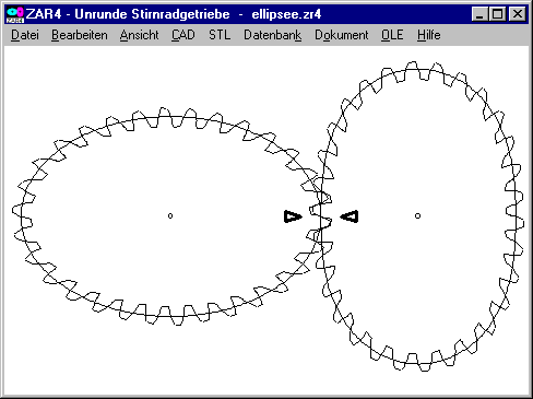 Um falsche Montage unrunder Zahnräder zu vermeiden, werden Antriebsrad und Gegenrad mit einem Pfeil markiert. Von ZAR4 gibt es auch eine neue Demoversion zum Download, damit kann man unrunde Zahnräder auf dem 3D-Drucker herstellen.