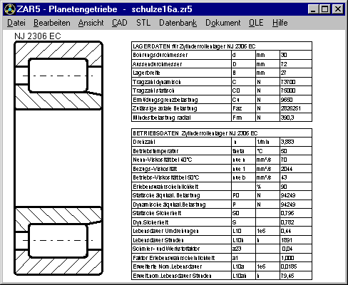 Im Ansicht- und CAD-Menü kann man jetzt auch die von LG1 und WL1+ bekannte Wälzlagerzeichnung mit Lagerdaten anzeigen und in CAD übernehmen. Für den Verbesserungsvorschlage danke ich Herrn Schulze von BS Antriebstechnik.