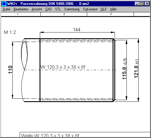 WN2,WN4,WN10,WNXE: Zahnbreite in Fertigungszeichnung bemaßt