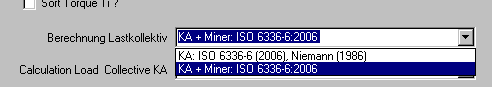 Die bisher in ZAR-Software verwendete Berechnungsmethode mit Berechnung der Anwendungsfaktoren KA nach Niemann ist in ISO 6336-6 beschrieben, aber laut Norm nur noch als Näherungslösung zulässig. Deshalb wird jetzt zusätzlich die alternative Berechnung mit Einzelberechnung aller Laststufen und Ermittlung der Lebensdauer aus Miner-Summe angeboten (konfigurieren unter Bearbeiten->Berechnungsmethode).