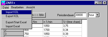 Außerdem gibt es noch die KOL-Dateien für Import/Export von Lastkollektiven. Das KOL-Format wurde um Drehzahlen erweitert.