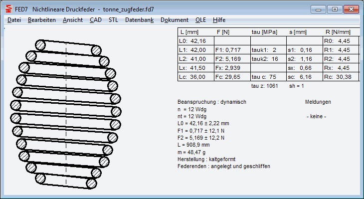 FED2+ calculates in-coiled prestress load F0 according to EN13906-2 (produced by coiling bench or spring coiler), or set to 0 (if distance between coils or hot-rolled), or input F0 directly. As additional option, you can enter prestress tau0 in MPa now.